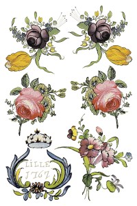 - Carefully remove the transfer from its white backing. Slowly and carefully lower the transfer onto your intended surface, making sure that it does not touch until the placement is correct. Use small pieces of low tack tape to hold it in place.